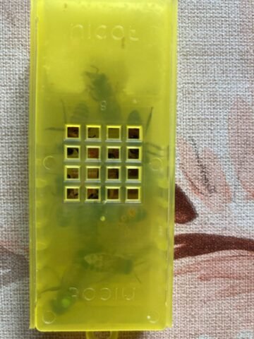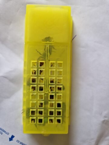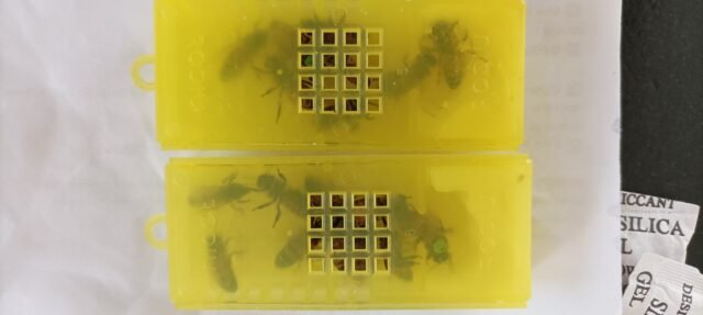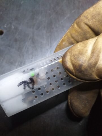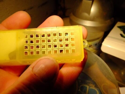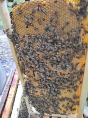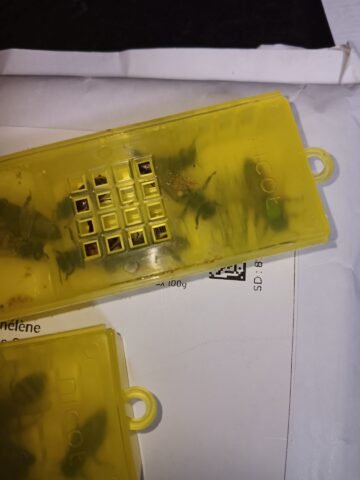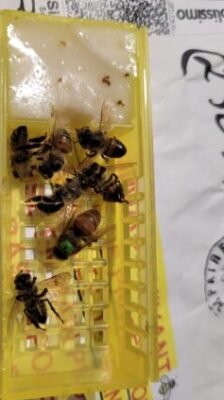 Bonne réception de la reine en parfaite santé. Je retire tjrs les accompagnatrices pour l’introduction et même après un transport de quelque jours elle ne sont pas agressive. Contrôle de la ponte 7 jours après, résultat: c’est pondu de partout, une vrais machine à œufs 😂
