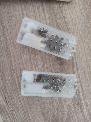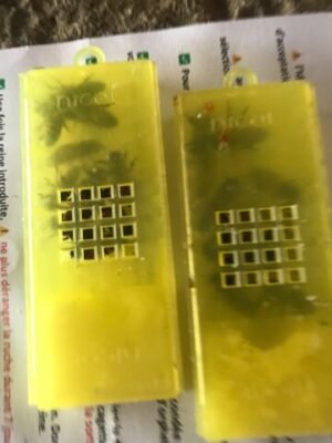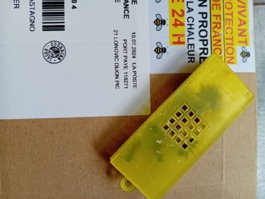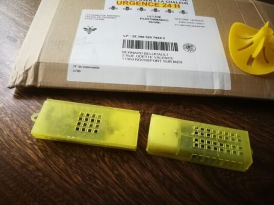 Malheureusement, la dernière commande est arrivée avec 3 cagettes HS et les deux reines vivantes. j’ai introduis dès mon retour, je verrais ca lundi.