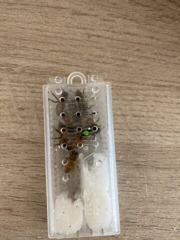 Suite à une mortalité partielle dûe au delai de livraison, les nouvelles reines sont arrivées, cette fois , dans les delais…