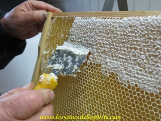 Bien sûr, il existe de nombreuses variantes de méthodes de nourrissement, vous pouvez utiliser du candi (plutôt en nourrissage d’urgence). Le candi a aussi l’avantage d’être mangé par les abeilles quelle que soit la température, contrairement au sirop ou les abeilles arrêtent de le prendre en dessous de 12 degrés