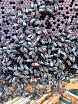 Reine bien reçue mais la chaleur dans notre région était très importante, les abeilles placées dans mon essaim ont souffert de la présence de fourmis. La reine n’ a pas été libérée de sa cage et les abeilles composant l’ essaim sont parties. Nous avons découvert la reine morte dans sa cage. Les conditions de mise en oeuvre n’ étaient pas bonnes, nous ne doutons pas de la qualité de vos reines.
